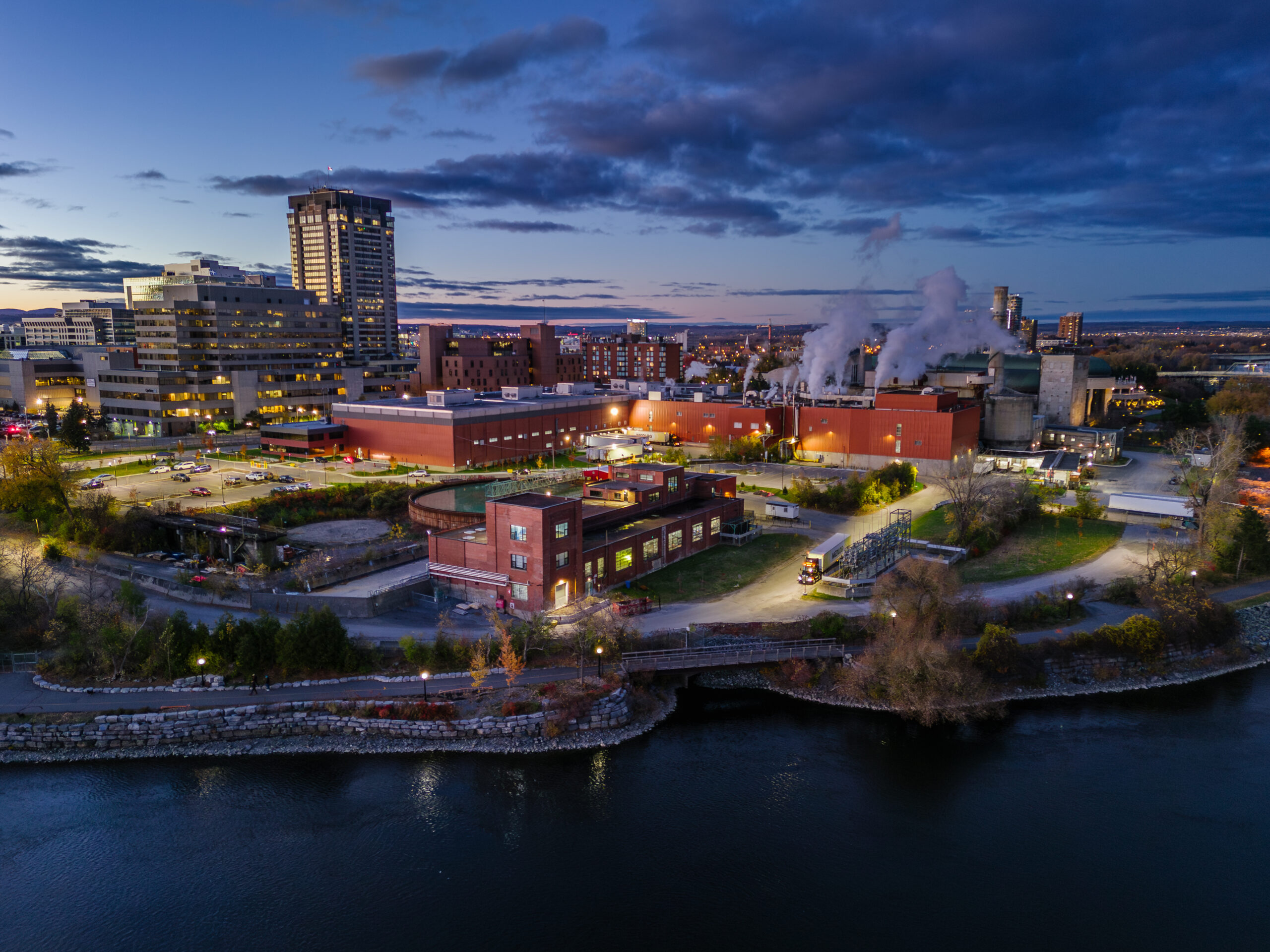 Produits Kruger nous a confié la mission de créer une image emblématique de son usine Laurier, située à Gatineau. Suite à une première livraison d’images issues de notre sortie de repérage, ils ont choisi une photo spécifique à recréer lors d’un coucher de soleil.